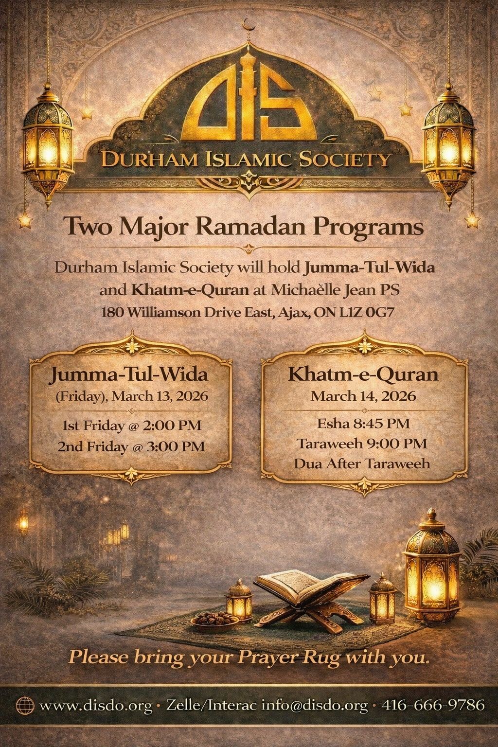 The Durham Islamic Society is the newly formed society of old aspiration to establish a society to help community and to establish a masjid to serve the community needs in North America. The idea of its existence was born in 1996. Our aim is to serve the Muslims of Durham and surrounding along with other faith based communities, be a beacon of light to illuminate and serve our city. Durham Islamic Society welcomes not only Muslims but also people from different faith to know more about Islam and help in spreading peace and love.
